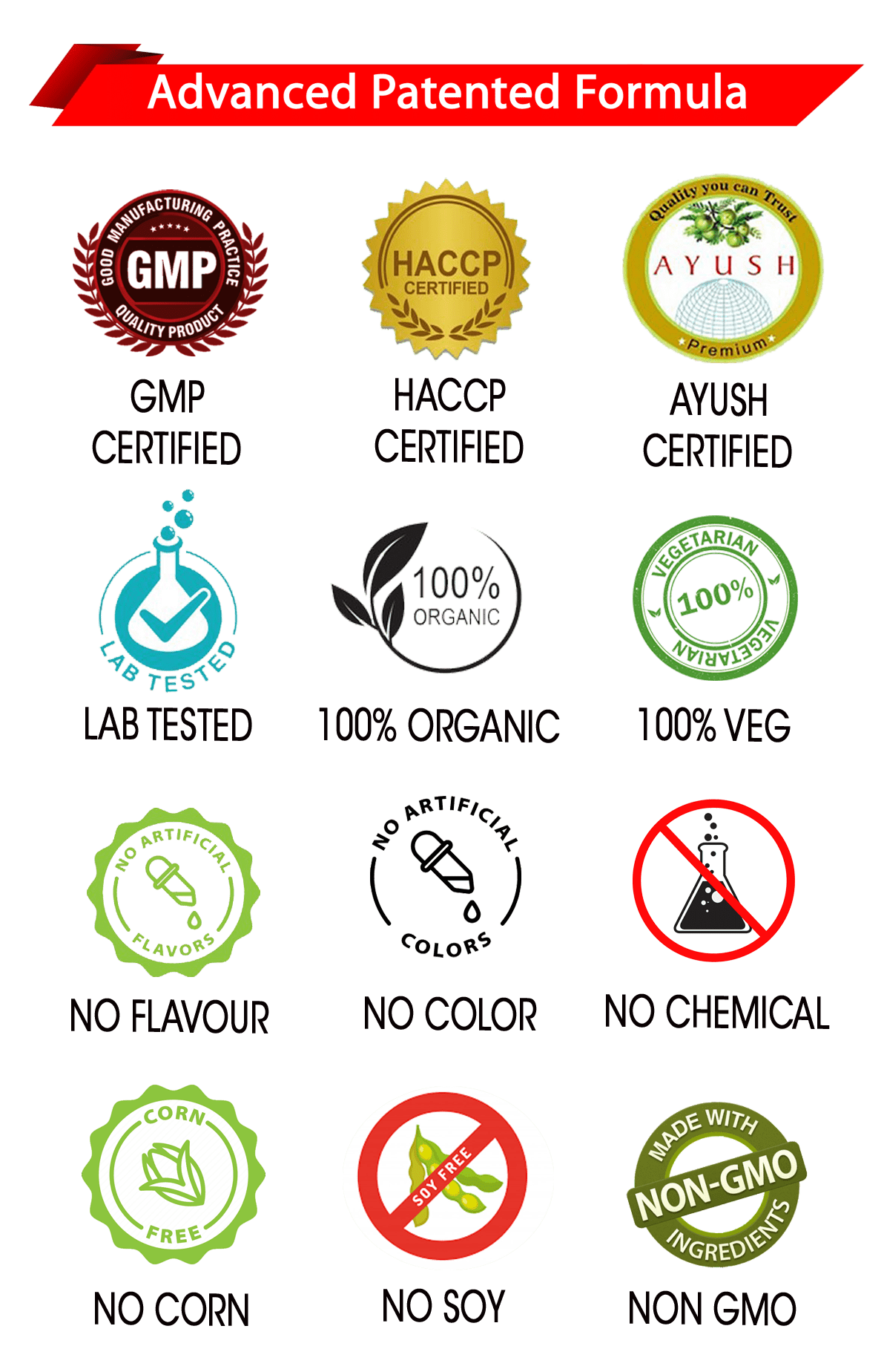 इसे बनाने के लिए उपयोग की जाने वाली सभी जड़ी बूटियां 100% आयुर्वेदिक हैं और इसका कोई दुष्प्रभाव नहीं है, इसलिए यह 100% सुरक्षित है।